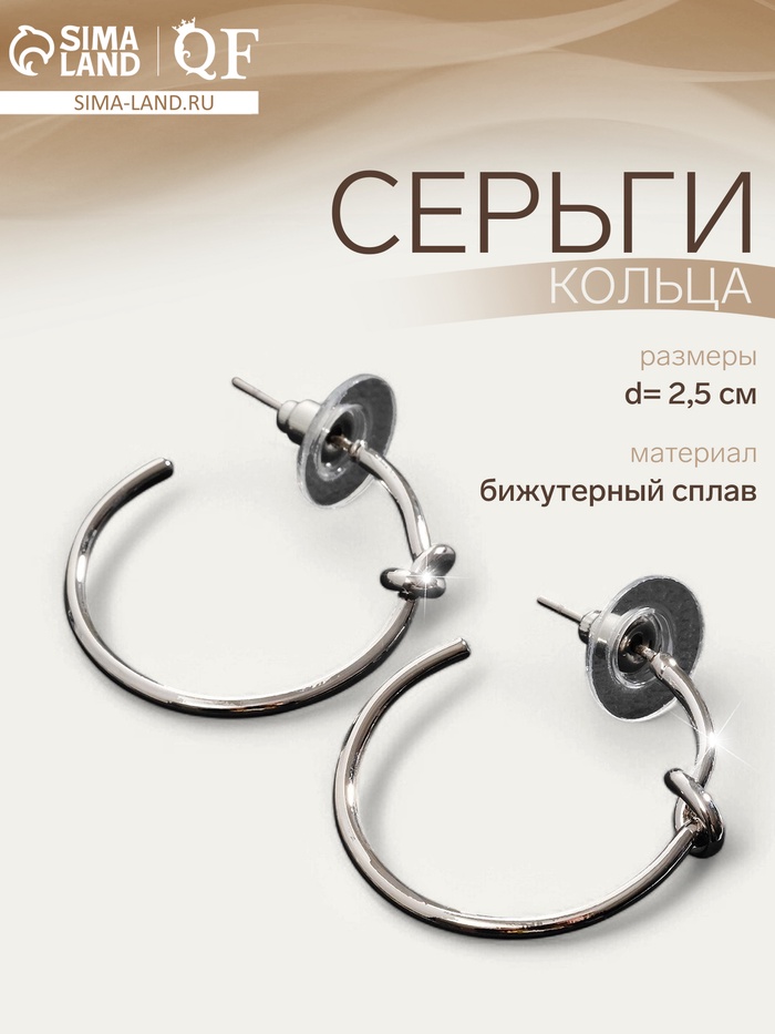Серьги-кольца диаметром 2,5 см — воплощение утончённой классики и современного минимализма. Изготовленные из прочного металла с серебристым покрытием, они легко дополнят любой образ, подчёркивая изысканность и стиль своей обладательницы.