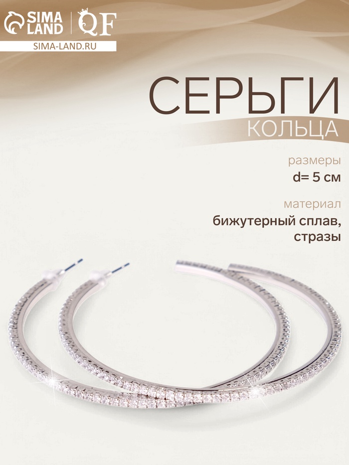 Откройте для себя изысканные серьги-кольца, которые подарят вашему образу непревзойденный шарм и элегантность. Эти утонченные украшения диаметром 5 см, оформленные сверкающими стразами на серебряной основе, могут стать тем самым акцентом, которому не мешает ни одна деталь вашего наряда.