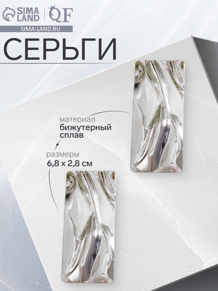 Серебристые серьги с прямоугольным дизайном создают сдержанный и современный образ. Длина 6,8 см делает аксессуар заметным, но при этом удобным для ежедневного ношения, подчёркивая индивидуальность и стиль женщины.