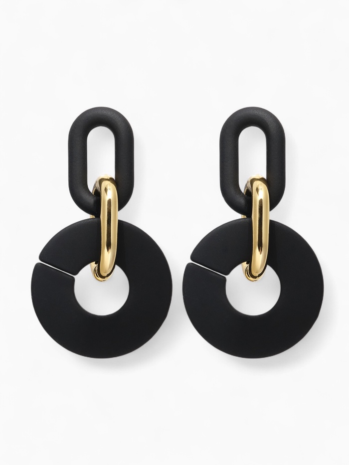 Эти серьги легко сочетаются с разными стилями одежды, добавляя нотку дерзости и утончённости. Золотисто-чёрное сочетание символизирует баланс и гармонию, подчёркивая индивидуальность и вкус.