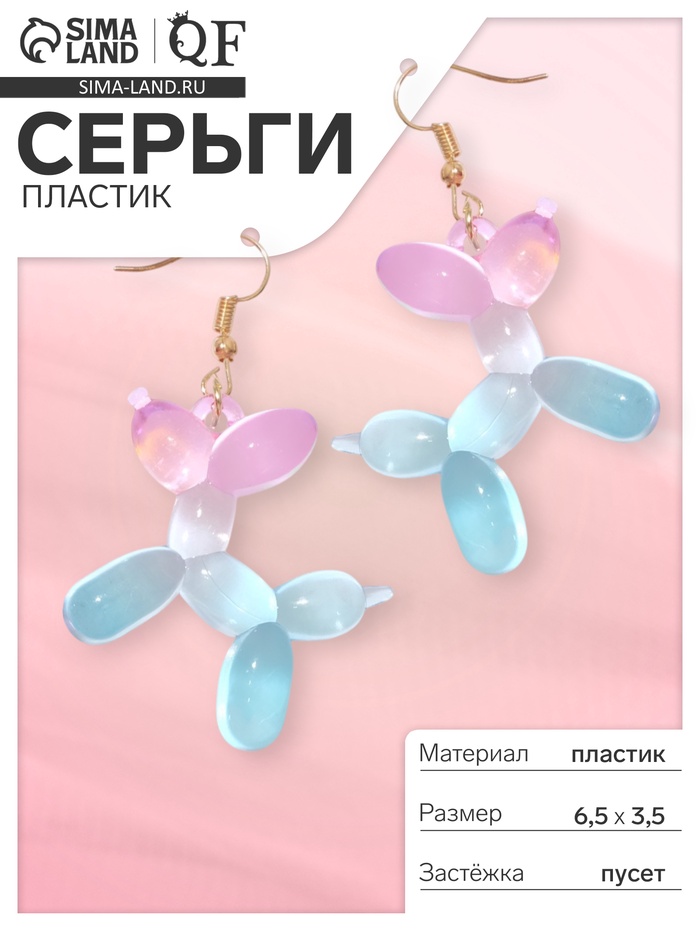 Лёгкие и игривые серьги в виде собачки из воздушного шарика станут ярким акцентом в вашем образе. Их нежная цветовая гамма — сочетание розового, голубого и прозрачного оттенков — придаёт украшению свежесть и оригинальность, позволяя выделиться среди повседневных аксессуаров.