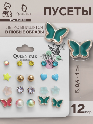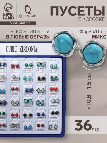 Серьги пусеты в коробке QF «Натурель», 36 пар, цвет МИКС в чернёном серебре