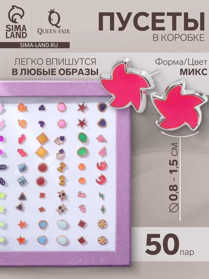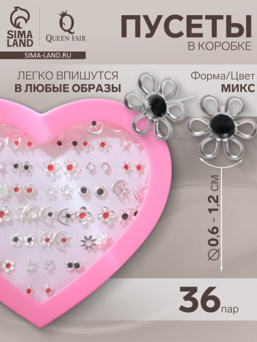 Серьги пусеты в коробке QF «Романтика», 50 пар, цвет МИКС