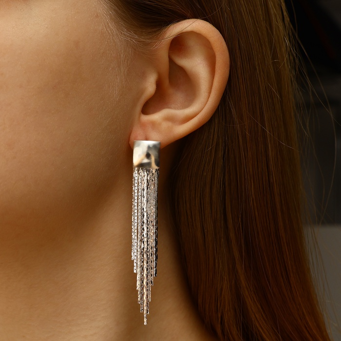 Серьги висячие «Голливуд» квадрат и нити, цвет серебро, 6.5 см