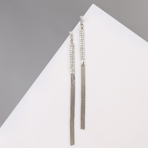 Изящные висячие серьги с серебристым покрытием и белыми стразами в форме крестиков создают эффект лёгкости и изящества в каждом движении. Их длина 6 см позволяет подчеркнуть линию шеи и добавить в образ нотку благородной сдержанности с современным акцентом.
