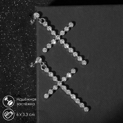 Изящные висячие серьги с серебристым покрытием и белыми стразами в форме крестиков создают эффект лёгкости и изящества в каждом движении. Их длина 6 см позволяет подчеркнуть линию шеи и добавить в образ нотку благородной сдержанности с современным акцентом.