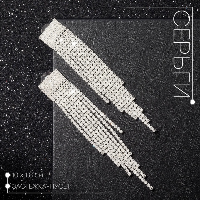 Откройте для себя элегантность и стиль с висячими серьгами, которые воплощают утончённость в каждой граненой детали. С серьгами, длиной в 10 см, выполненными в белом цвете с изысканной серебряной фурнитурой, вы будете выглядеть ослепительно в любой ситуации. Их крупные квадратные стрази, искрящиеся словно капли воды на солнечном свете, добавляют утончённый акцент к вашему образу.