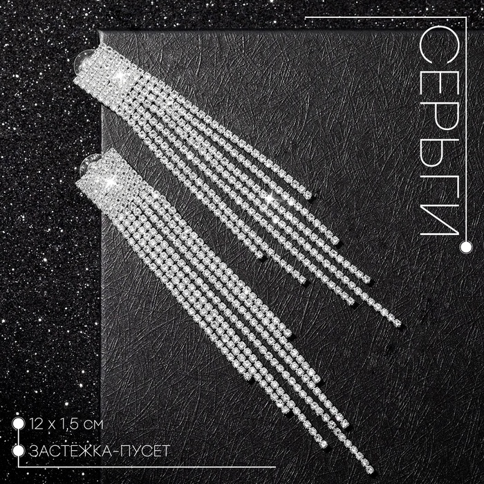 Висячие серьги с белыми кристаллами на серебристой основе длиной 12 см представляют собой современный аксессуар с прямоугольным элементом, украшенным сияющими стразами. Их стиль подчёркивает женственность и добавляет выразительности любому образу.
