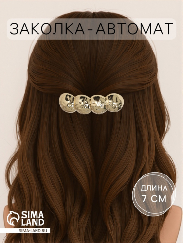 Заколка - автомат для волос «Хелле», круги рельеф, 7 см, золото