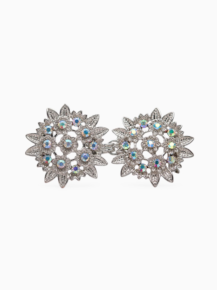 Длина зажима в 6,5 см делает его идеальным для использования на кардиганах, шали или даже платьях, а вставка из элегантных страз придаст вашему образу особое сияние. Изготовленный из качественного металла, он обещает долговечность и надежность, что позволяет носить его с удовольствием в любой ситуации.