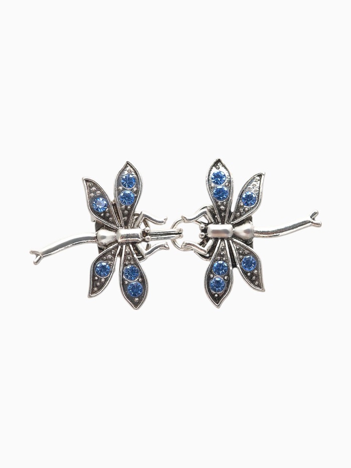 Зажим для кардигана «Стрекоза», цвет синий в чернёном серебре
