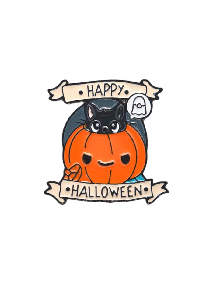 Компактный размер в 3 см делает значок универсальным аксессуаром, который легко дополнит любой образ, будь то одежда, сумка или рюкзак. Его тематический дизайн с элементами Хэллоуина и милым котом создаёт атмосферу веселья и загадочности, идеально подходящую для осенних дней и тематических мероприятий.