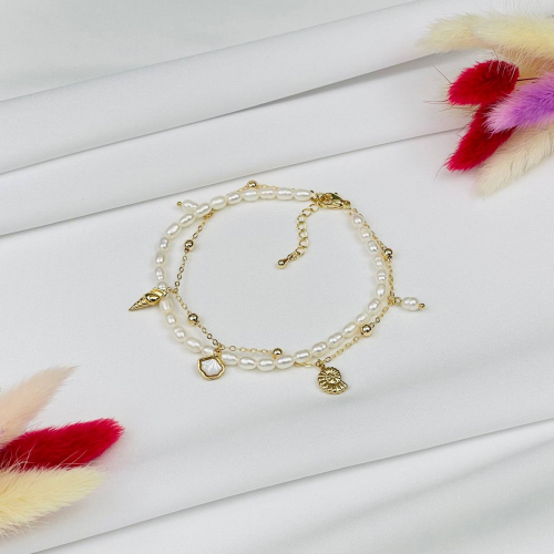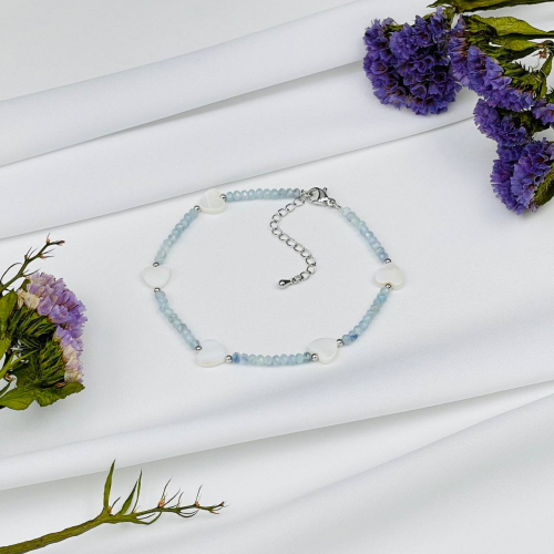 Радуга Самоцветов Анклет "браслет на ногу" из Аквамарина и Перламутра