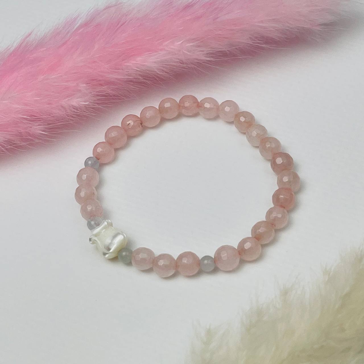 Радуга Самоцветов Браслет детский из Розового кварца и Аквамарина со вставкой "Цветок"