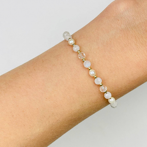 Радуга Самоцветов Браслет для "Рака" из Аквамарина,Лунного камня и Жемчуга