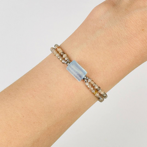 Радуга Самоцветов Браслет двойной из Граната и ботсванского Агата