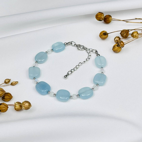 Радуга Самоцветов Браслет из Аквамарина и Лунного камня