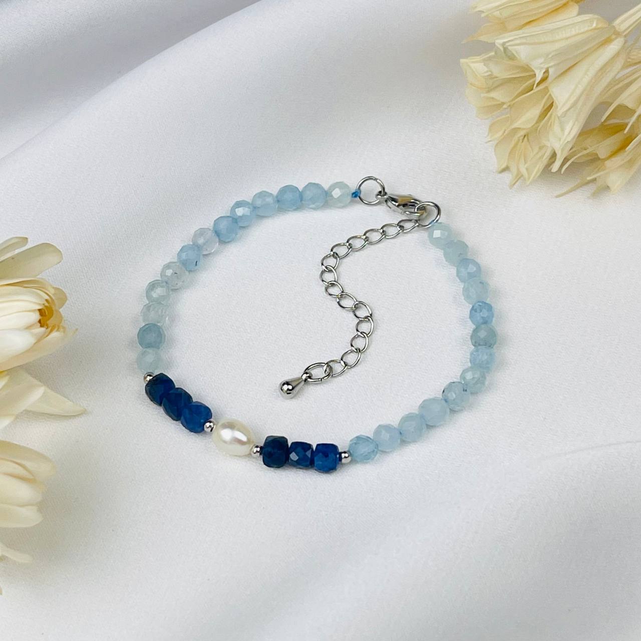 Радуга Самоцветов Браслет из Аквамарина,Содалита и Жемчуга
