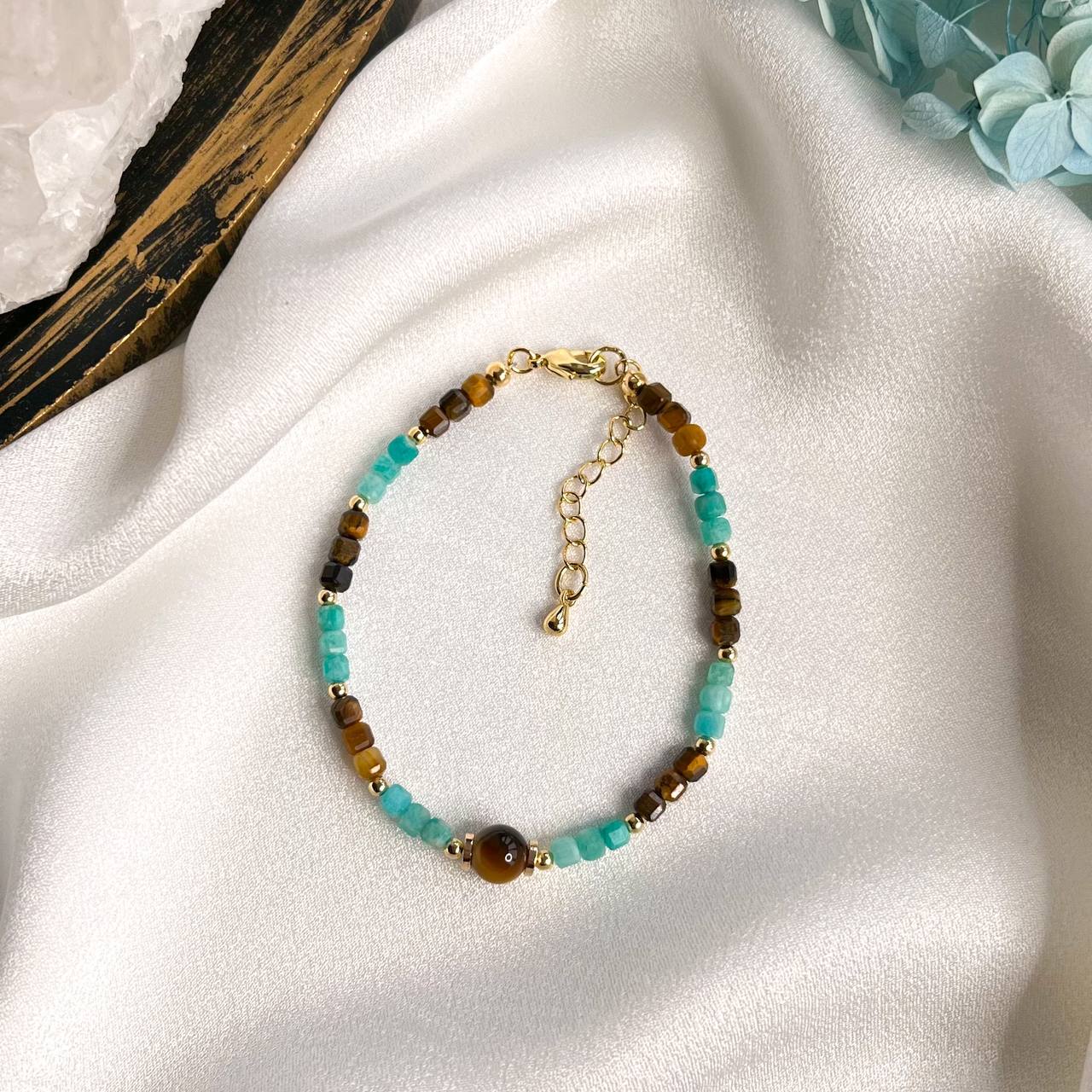 Радуга Самоцветов Браслет из Амазонита и Тигрового глаза