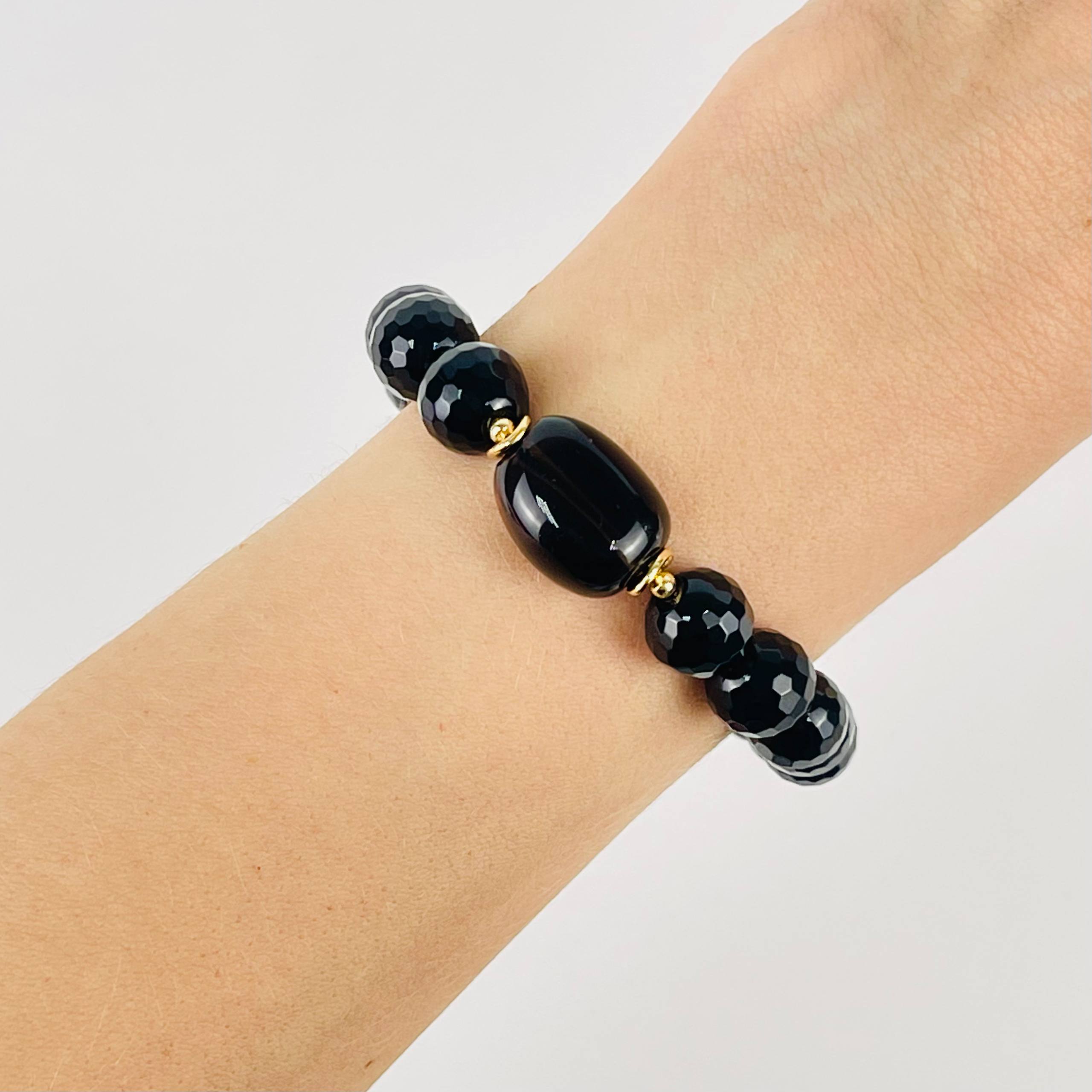 Радуга Самоцветов Браслет из черного Агата и Раухтопаза