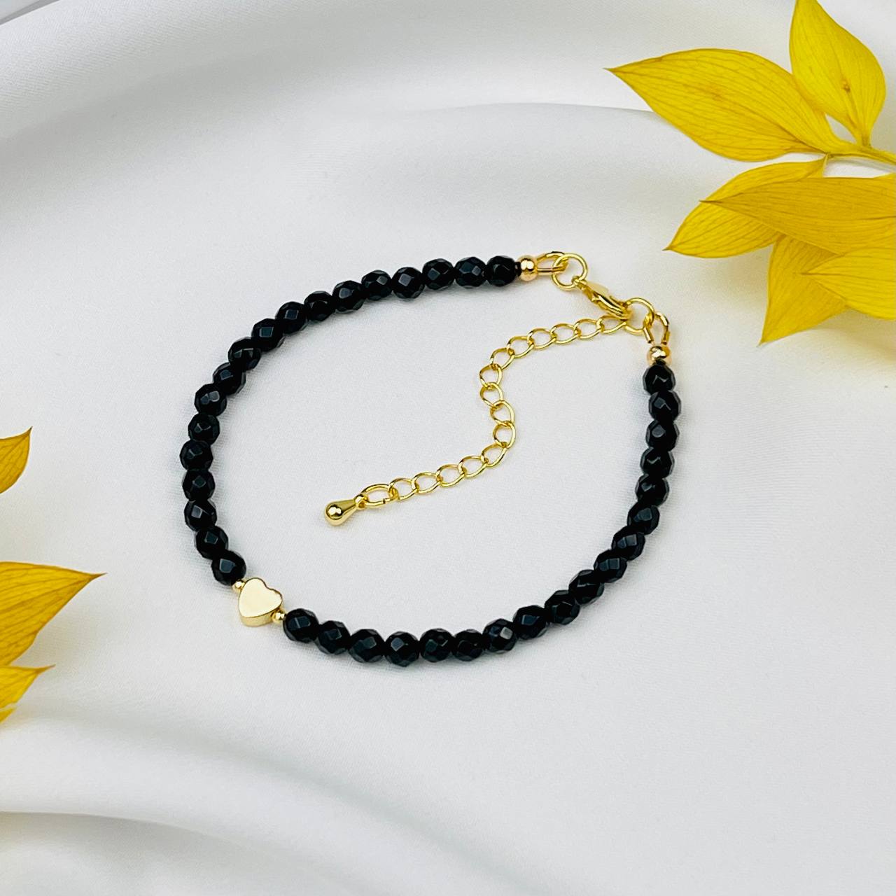 Радуга Самоцветов Браслет из черного Агата со вставкой "Сердце"