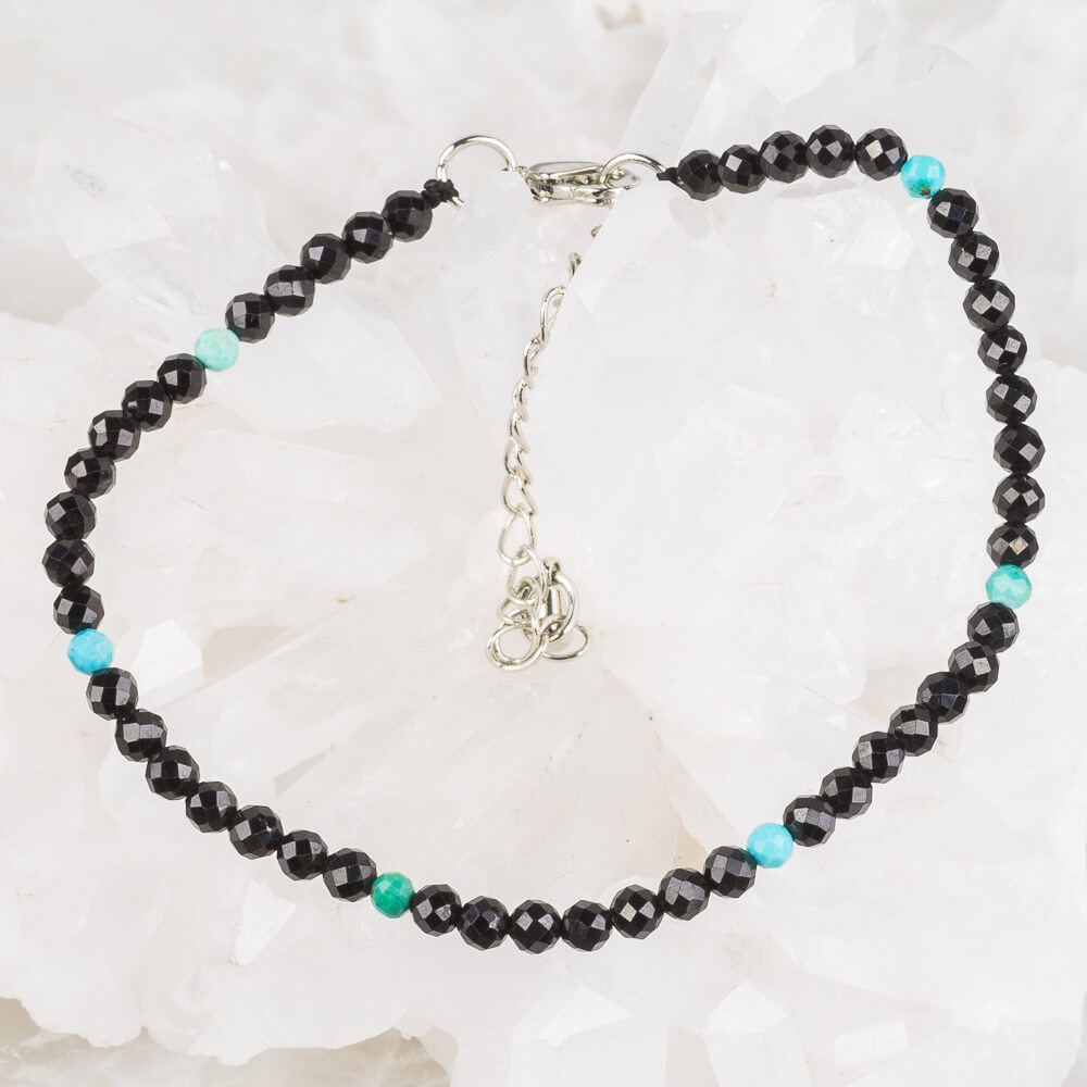 Радуга Самоцветов Браслет из черной Шпинели и Бирюзы огранка