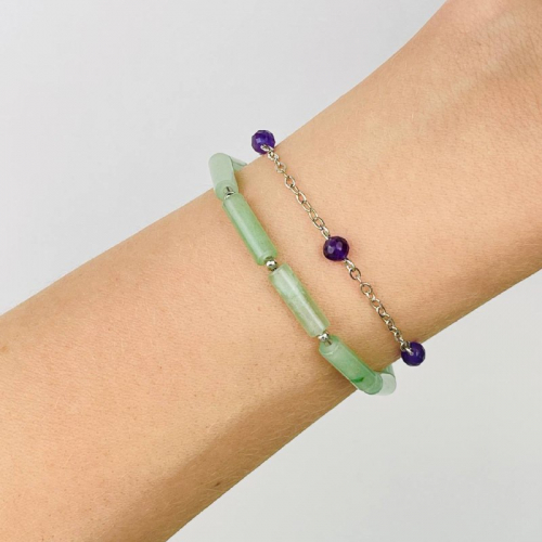 Радуга Самоцветов Браслет из Флюорита и Аметиста с подвеской