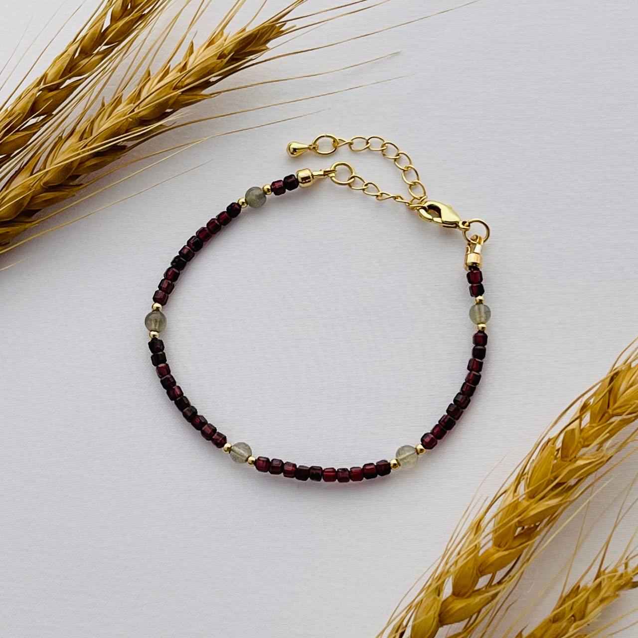 Радуга Самоцветов Браслет из Граната с Лабрадором