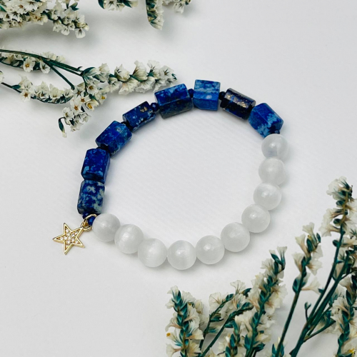 Радуга Самоцветов Браслет из Лазурита и Селенита с подвеской "Звезда"