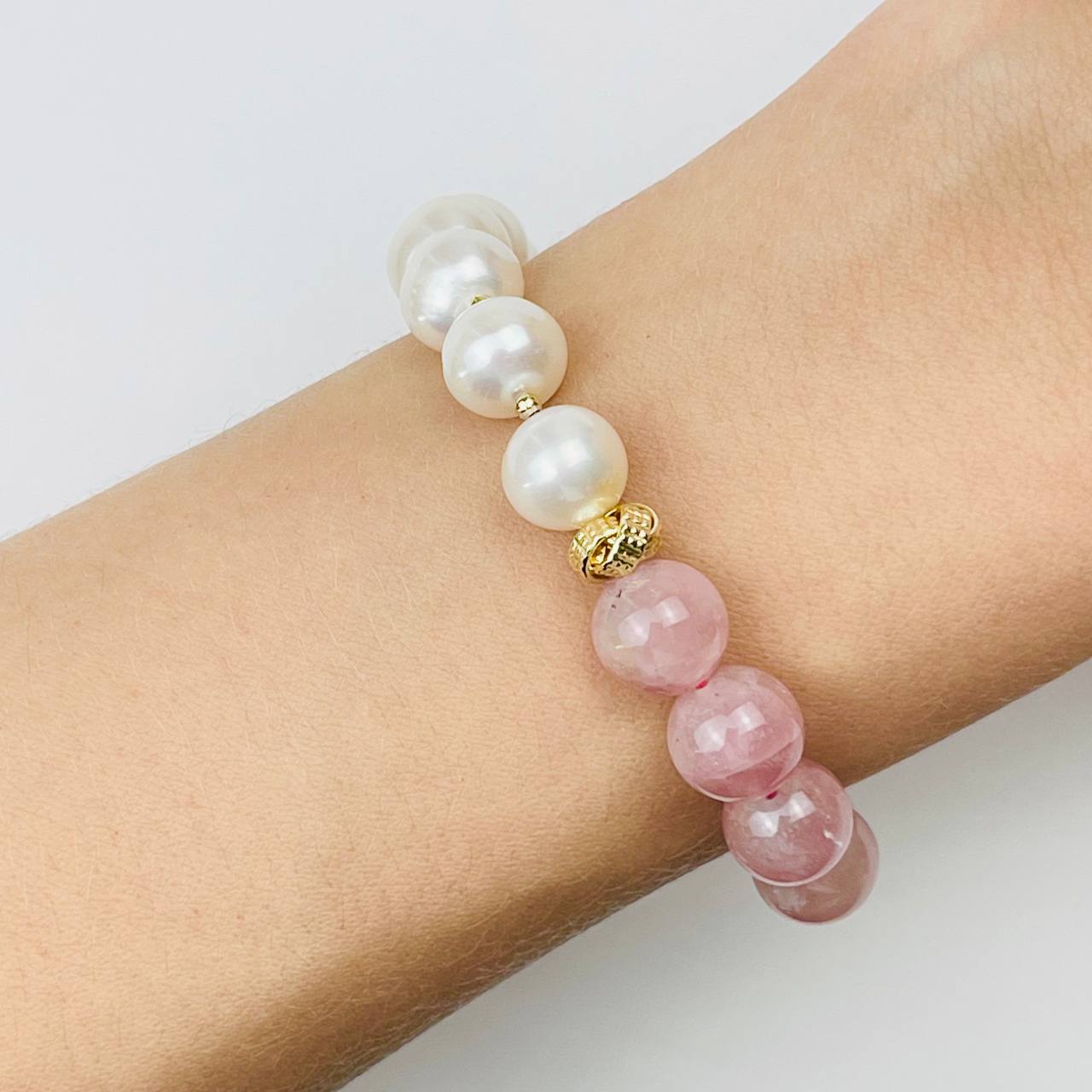 Радуга Самоцветов Браслет из мадагаскарского Розового кварца и Жемчуга
