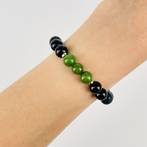 Радуга Самоцветов Браслет из Обсидиана, Лавы и Нефрита