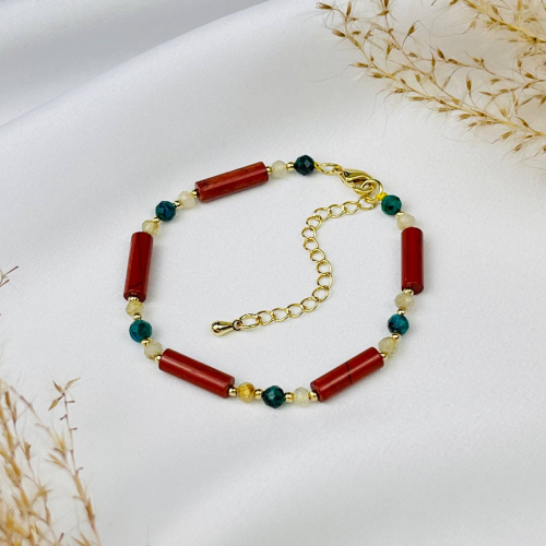 Радуга Самоцветов Браслет из песочной Яшмы,Бирюзы и Обсидиана