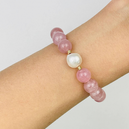 Радуга Самоцветов Браслет из Розового кварца и Жадеита