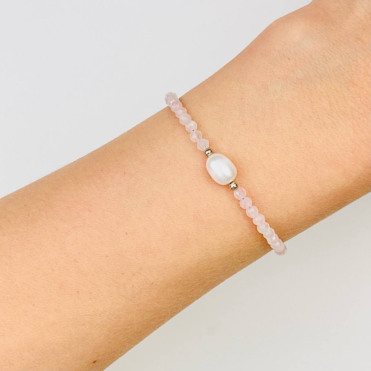 Радуга Самоцветов Браслет из Розового кварца и Жемчуга