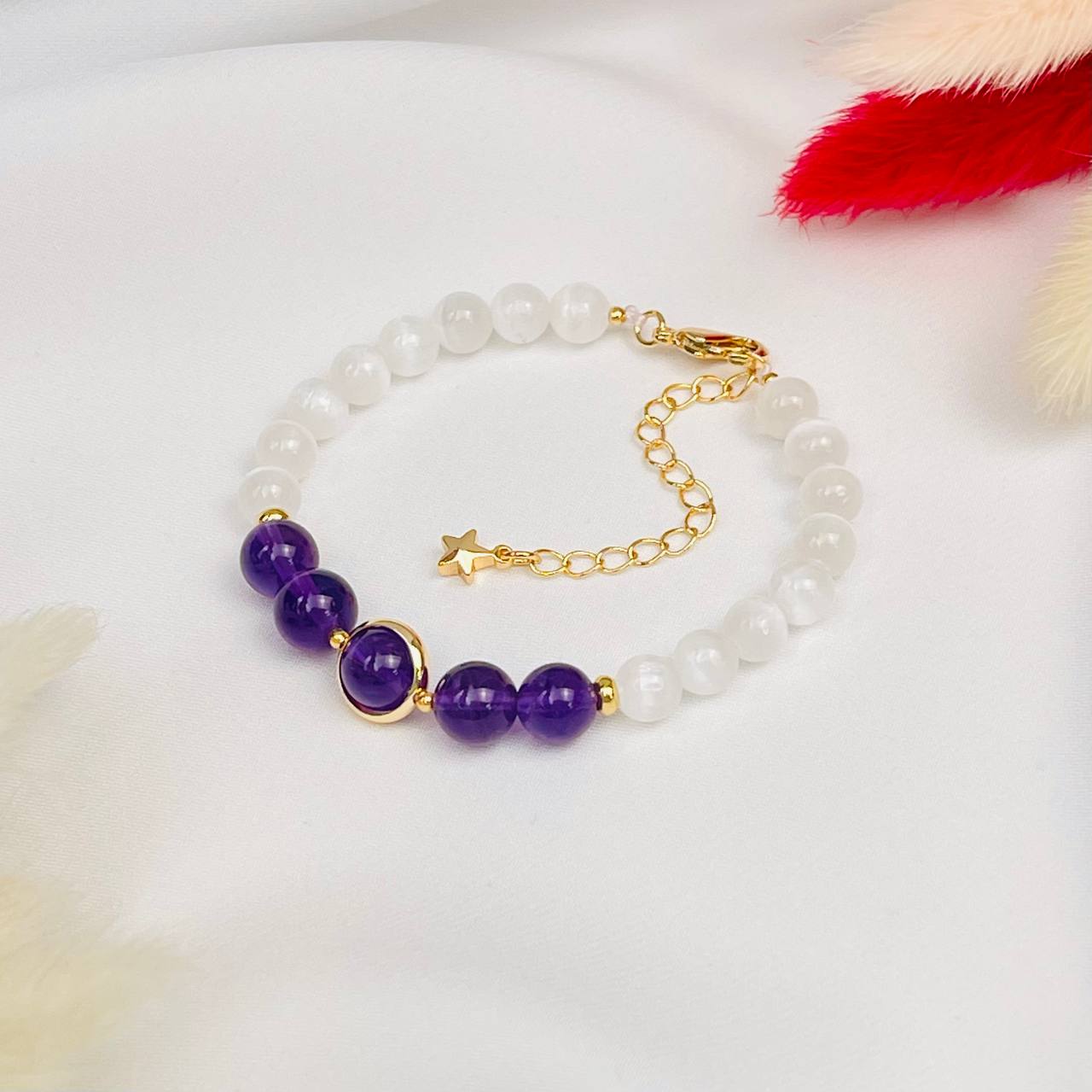 Радуга Самоцветов Браслет из Селенита и Аметиста