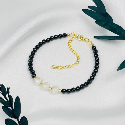 Радуга Самоцветов Браслет из серебристого Обсидиана и Говлита с подвеской
