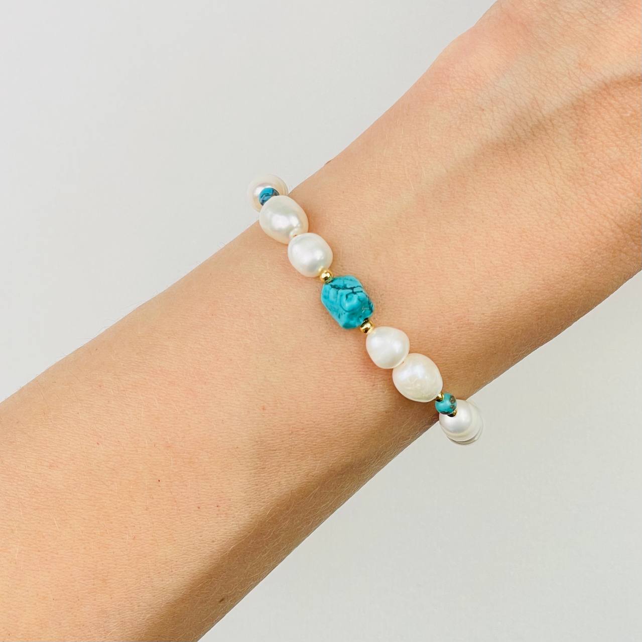 Радуга Самоцветов Браслет из Жемчуга и Бирюзы
