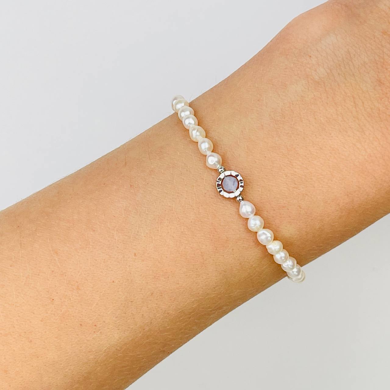 Радуга Самоцветов Браслет из Жемчуга и Голубого агата