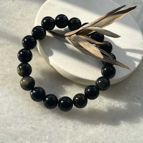 Радуга Самоцветов Браслет из золотистого Обсидиана с Раухтопазом