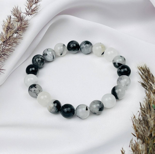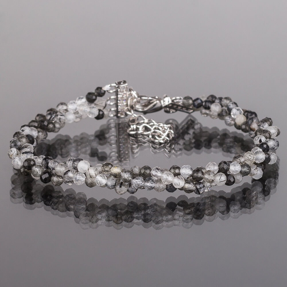 Радуга Самоцветов Браслет Кварц с включением Турмалина черного тройной