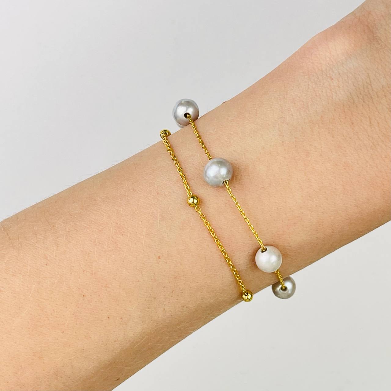 Радуга Самоцветов Браслет на цепочке двойной с Жемчугом