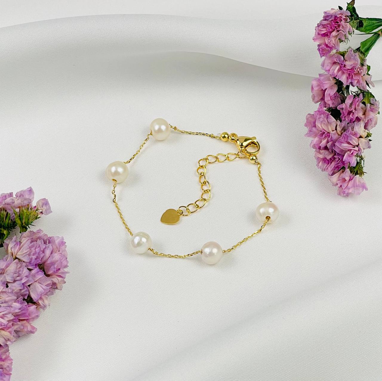 Радуга Самоцветов Браслет на цепочке с Жемчугом