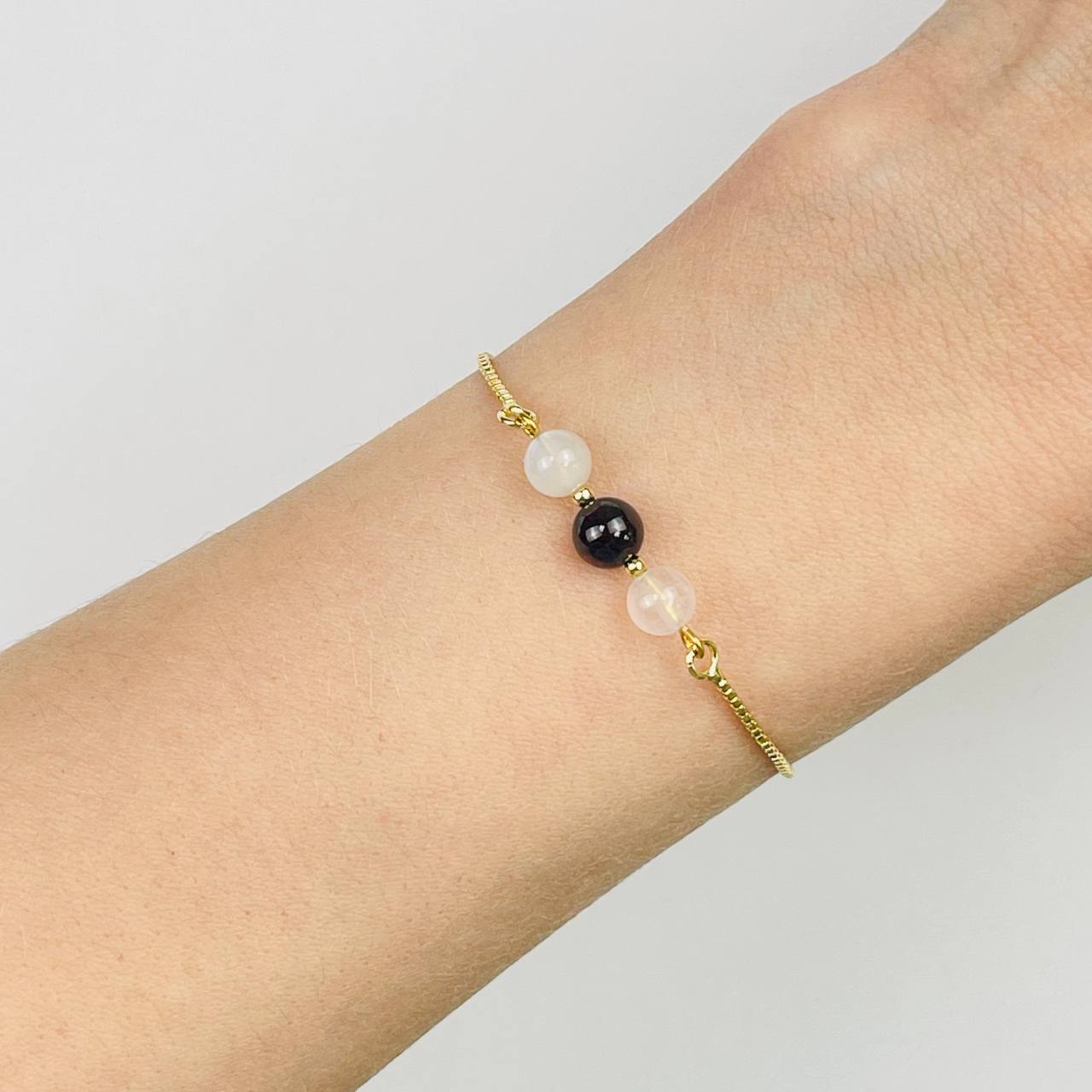 Радуга Самоцветов Браслет регулируемый для "Водолея" из Лунного камня, Граната и Розового кварца