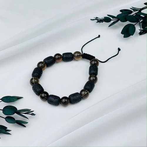 Радуга Самоцветов Браслет регулируемый из Лавы и Раухтопаза