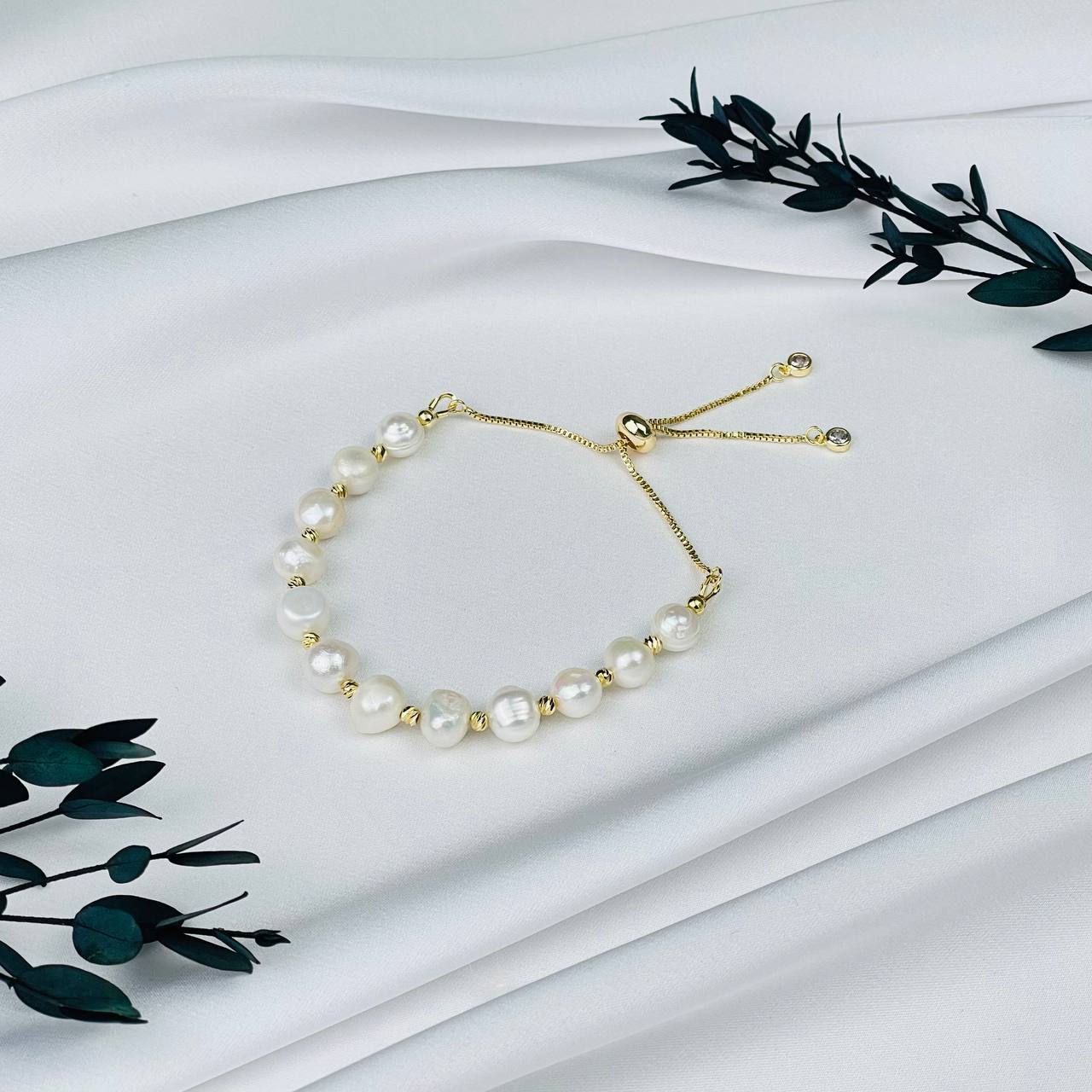 Радуга Самоцветов Браслет регулируемый с Жемчугом
