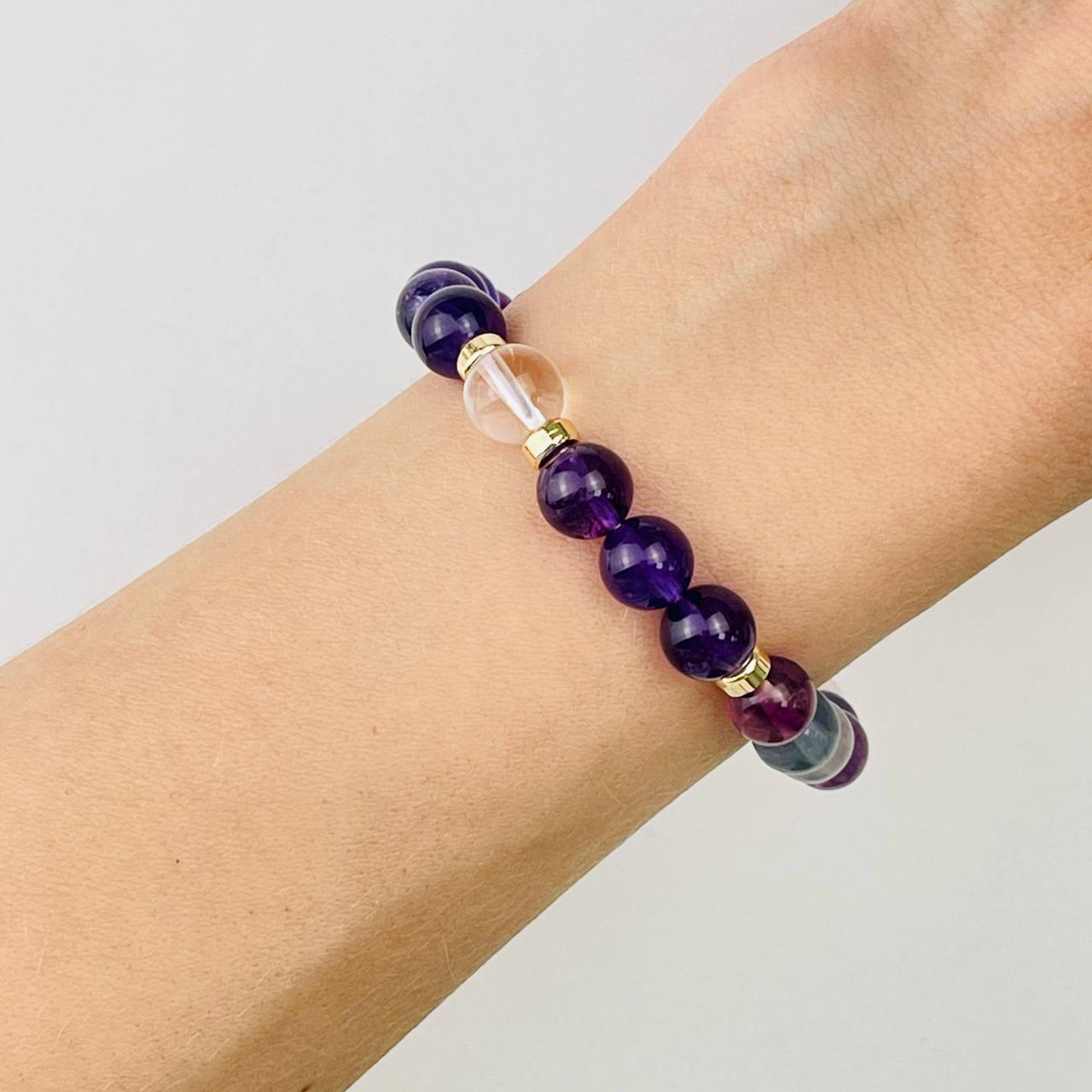 Радуга Самоцветов Браслет "Стихия Эфир" из Аметиста, Флюорита и Горного Хрусталя