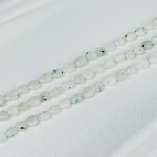 Радуга Самоцветов Бусины для украшений из Лунного камня с вкл. Турмалина (галтовка)