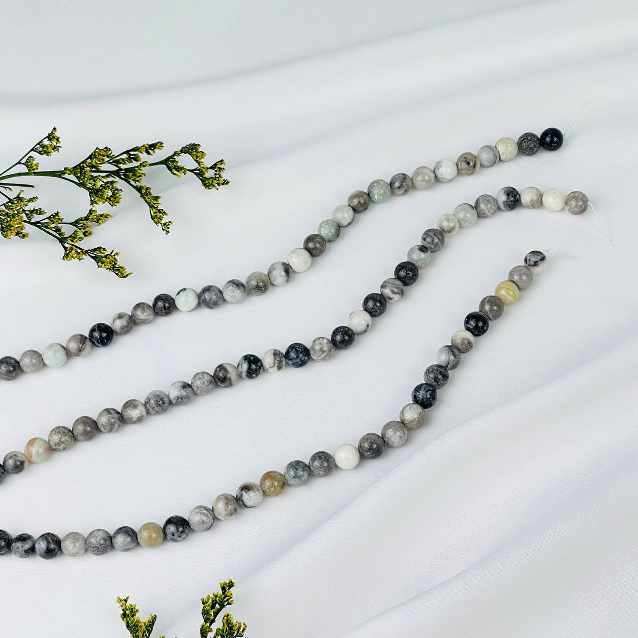 Радуга Самоцветов Бусины для украшений из серой Яшмы (46 бусин)
