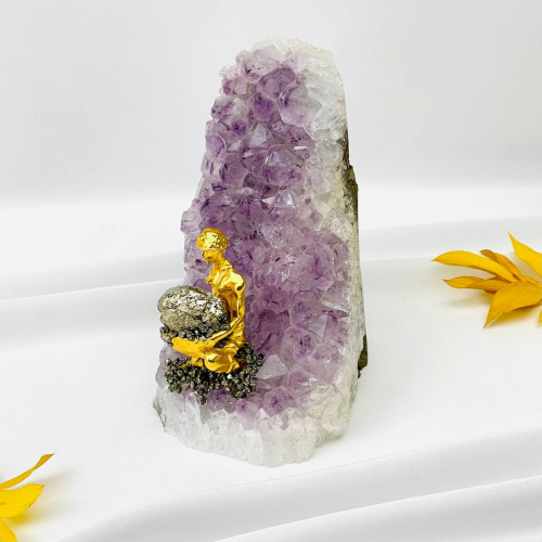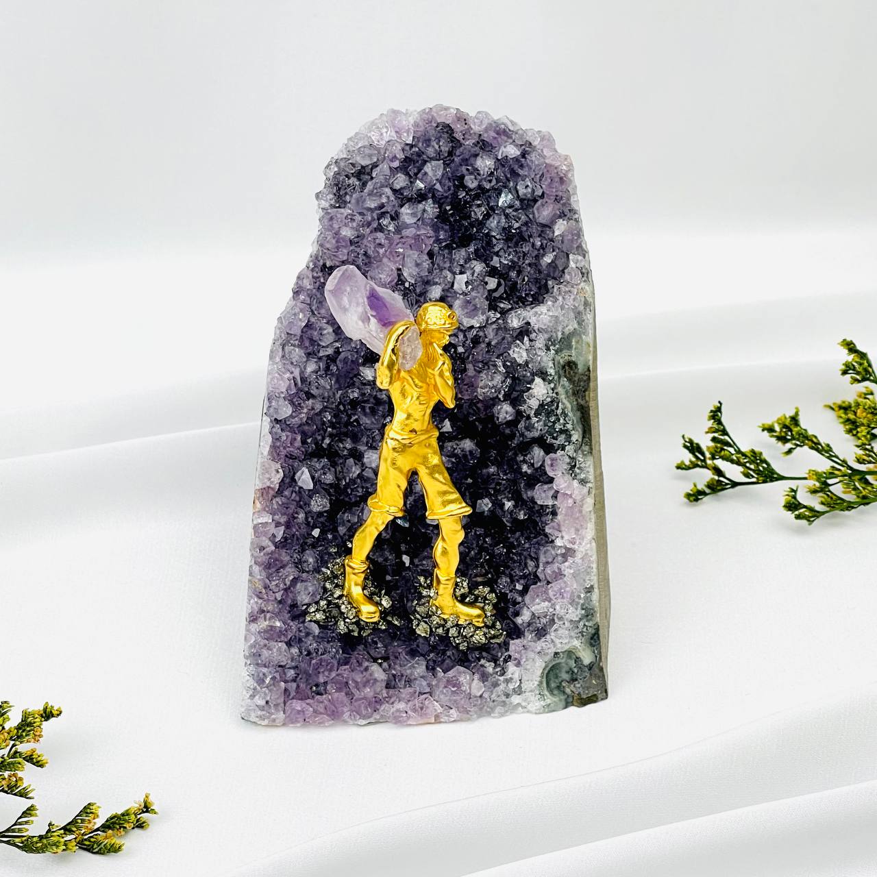 Радуга Самоцветов Фигурка Старатель с Пиритом на жеоде из Аметиста