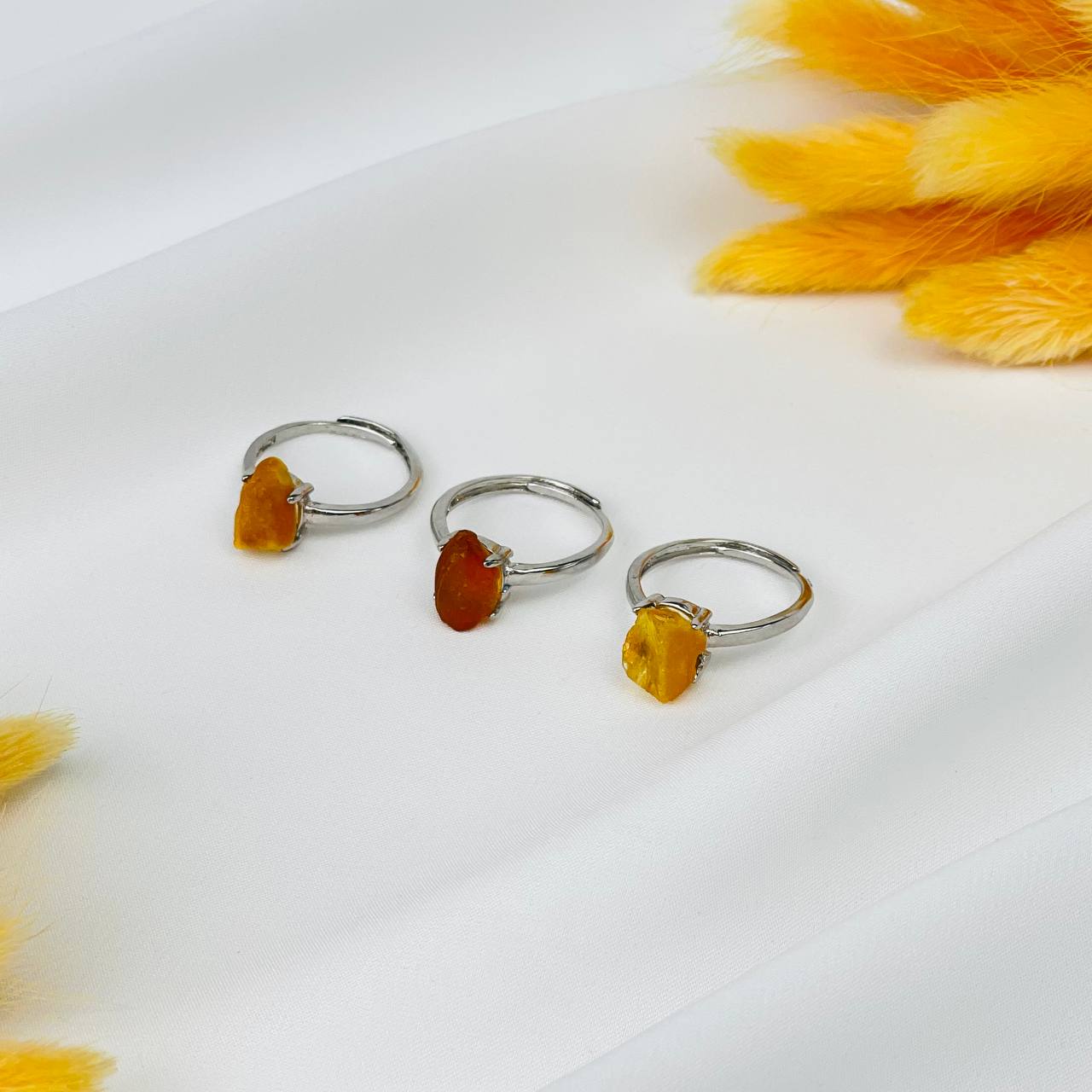 Радуга Самоцветов Кольцо регулируемое из необработанного Янтаря